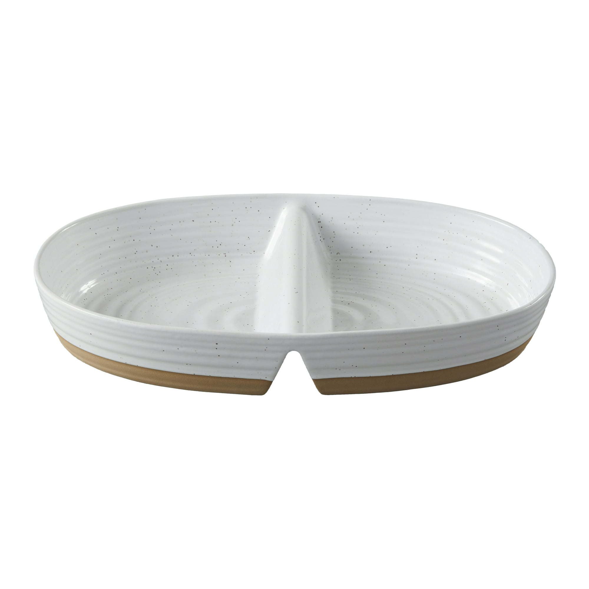 Better Homes & Gardens Abbott Exposed Clay Stoneware Divided Serving Tray, White Speckled, Oval