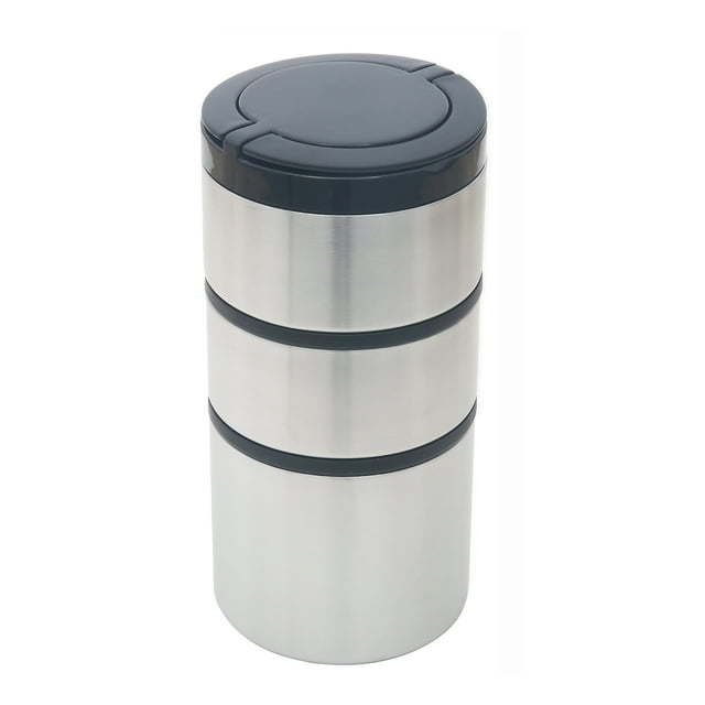 Transport or store food in organized sections with the 41 oz stainless steel food jar with 3 compartments. The three compartments allow you to separate ingredients or courses to keep foods fresh and tidy. The slim rounded container is lightweight and includes a top handle for easy carrying. Use it to pack salads, snacks, dry goods, leftovers and more for work, school, or travel. Crafted from food-safe stainless steel, it won't absorb odors or flavors. Durable and leakproof, this 3-compartment jar takes meal prep organization on-the-go.